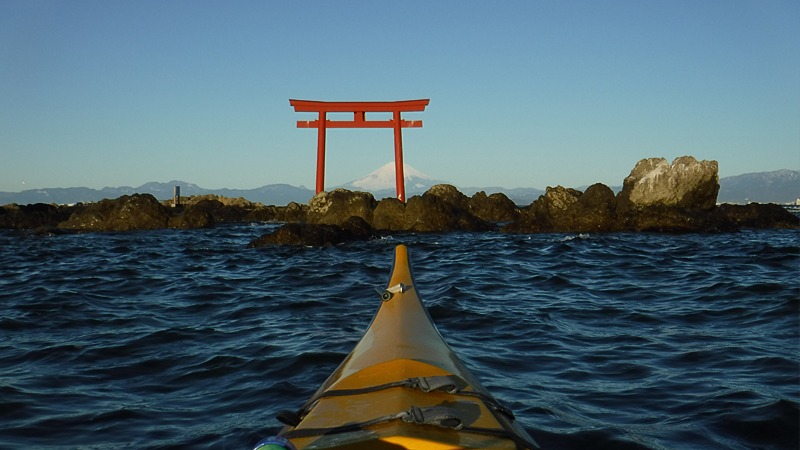 Landed on Kasa Island again, but this time launched from home on Morito Beach. Beautiful weather with Mt. Fuji out, but not super calm waters and there was still some leftover chop/rollers from the windy day yesterday.