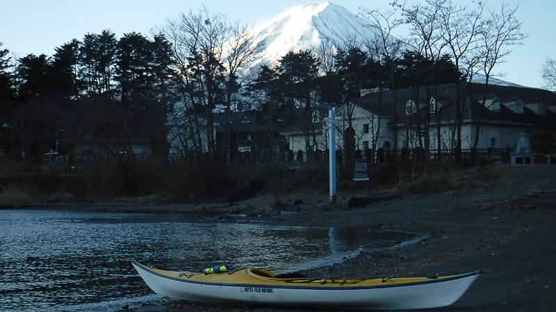 Headed to one of Mt. Fuji’s Five Lakes during Presidents Day Weekend and kayaked Lake Kawaguchi. Went for an early morning paddle across the entire lake… it was a cold, crisp and very windy trip at times. During gusts, I could barely maintain ground while paddling my hardest. The lake spray also built up a layer of ice on my kayak, paddle and jacket.