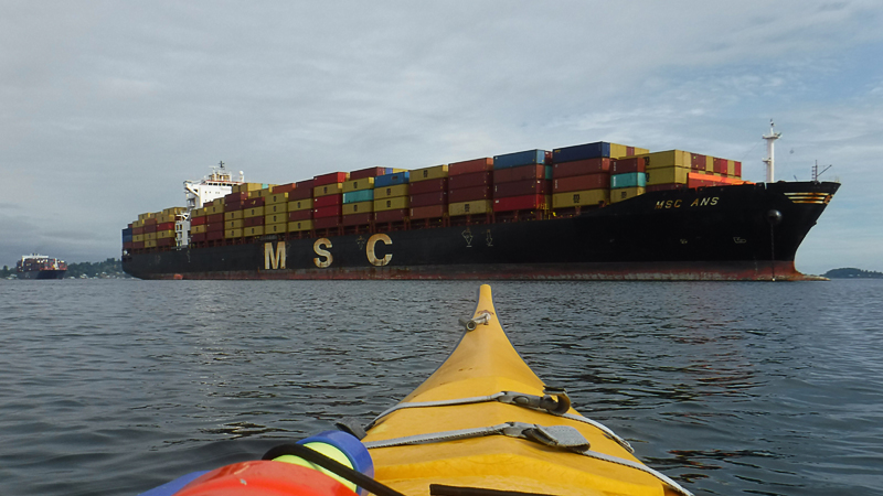 Paddled around my home waters with Jon as we launched from Pomeroy Park and paddled to the Southworth ferry and back. Impressive seeing the cargo ships up close.